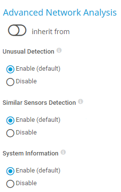 • Enable (default): Activates the similar sensors detection for this object and, by default, for all objects underneath in the object hierarchy. PRTG considers all sensors that are affected by this setting during the similarity analysis.