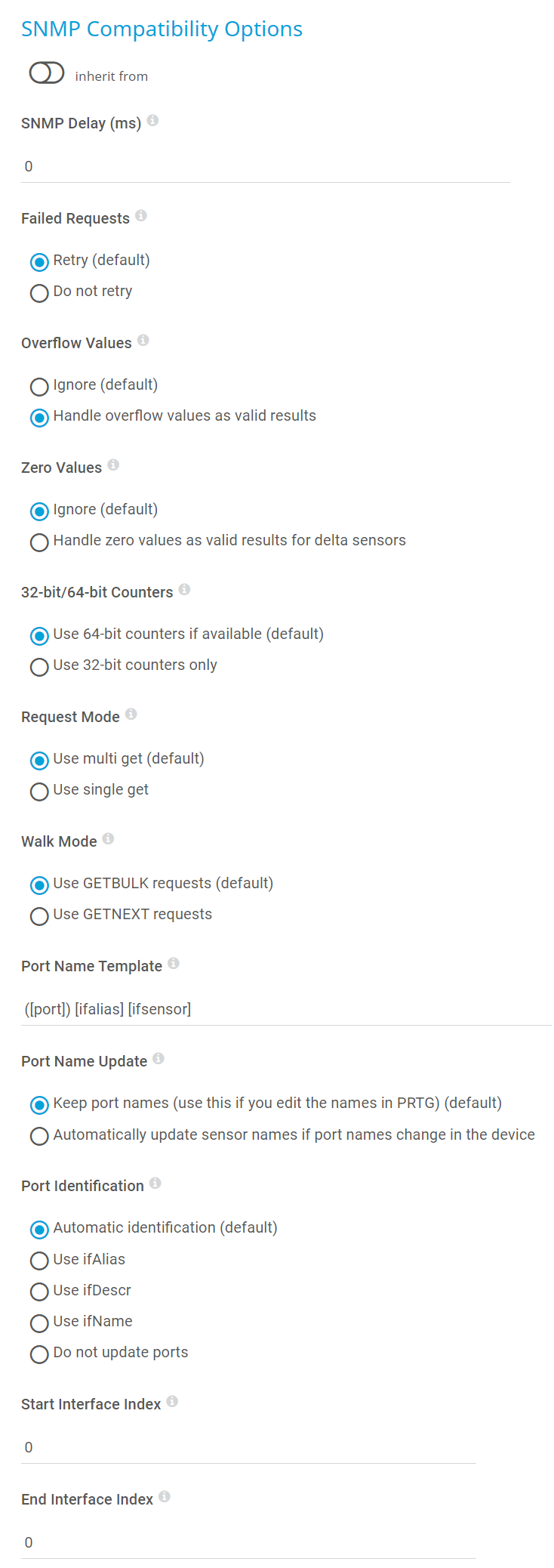 i_round_blueThe System Information feature is enabled by default. To retrieve the data, PRTG automatically uses the credentials for Windows systems and the credentials for SNMP devices that you entered in the device settings or that the device inherits from a parent object like the root group. Consider this when you monitor devices that are outside of your local network, especially when you use SNMP v1 or SNMP v2c, which do not provide encryption.