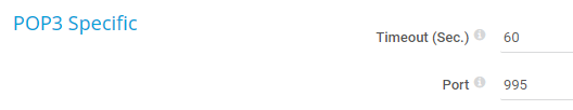 Specify the port that the sensor uses for the POP3 connection. The default port for unsecure connections is 110 and the default port for secure connections is 995. The actual setting depends on the server you connect to. Enter an integer.