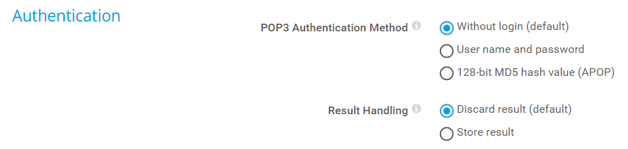 Select the authentication method for the POP3 connection: