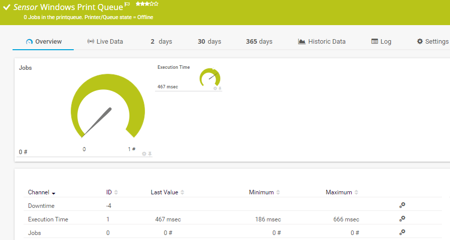 i_round_blueYou can use this sensor to monitor all print queues on your Windows print server and to retrieve information about all available jobs that are in the queue longer than defined.